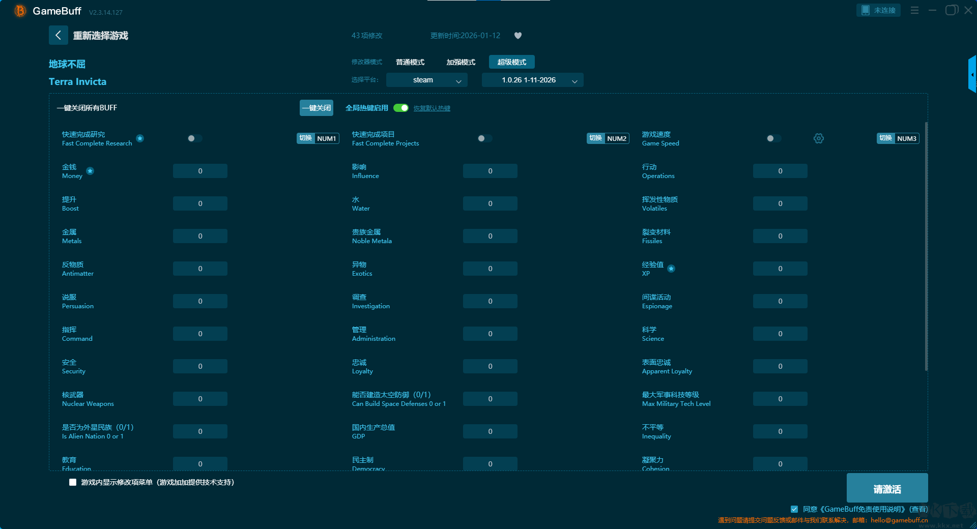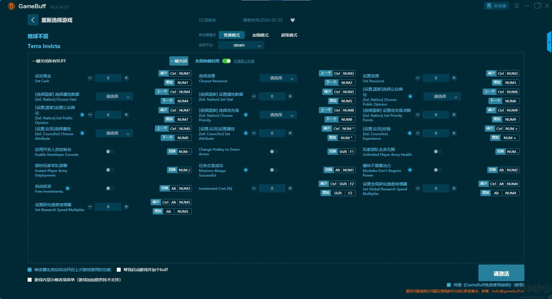 地球不屈二十二项修改器pc免费版普通模式修改功能介绍