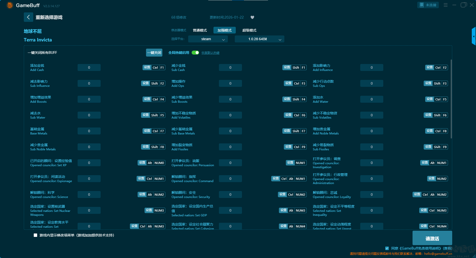 地球不屈二十二项修改器pc免费版加强模式修改功能介绍