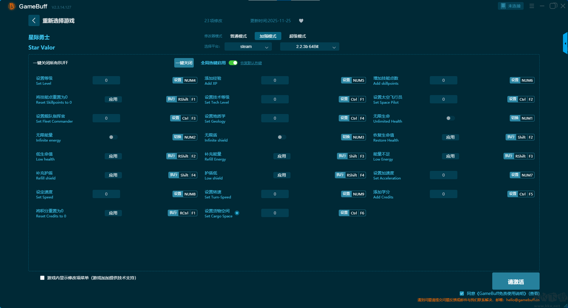 星际勇士七项修改器pc官方版加强模式修改功能介绍