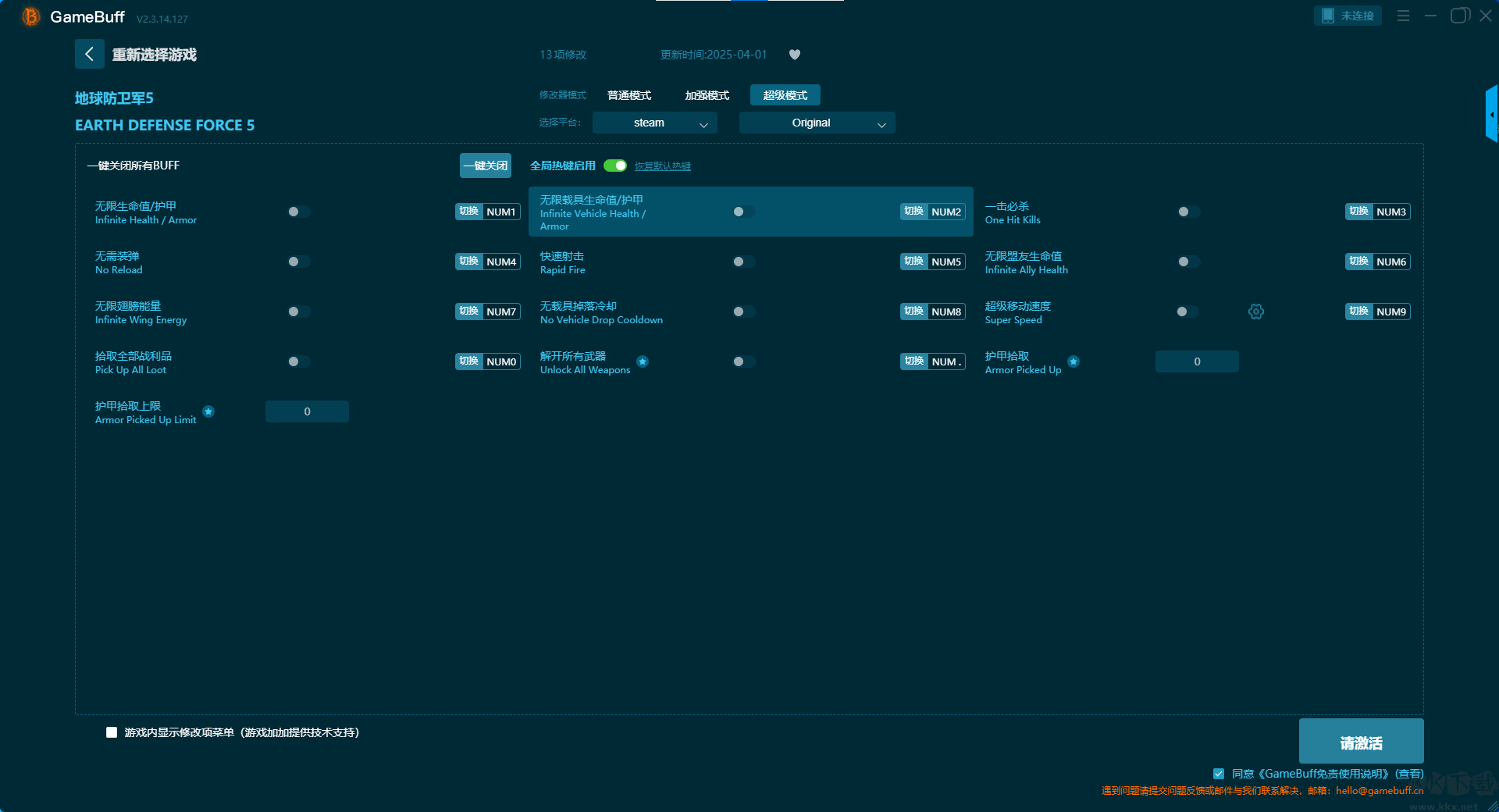 地球防卫军5五项修改器pc官网版超级模式修改功能介绍