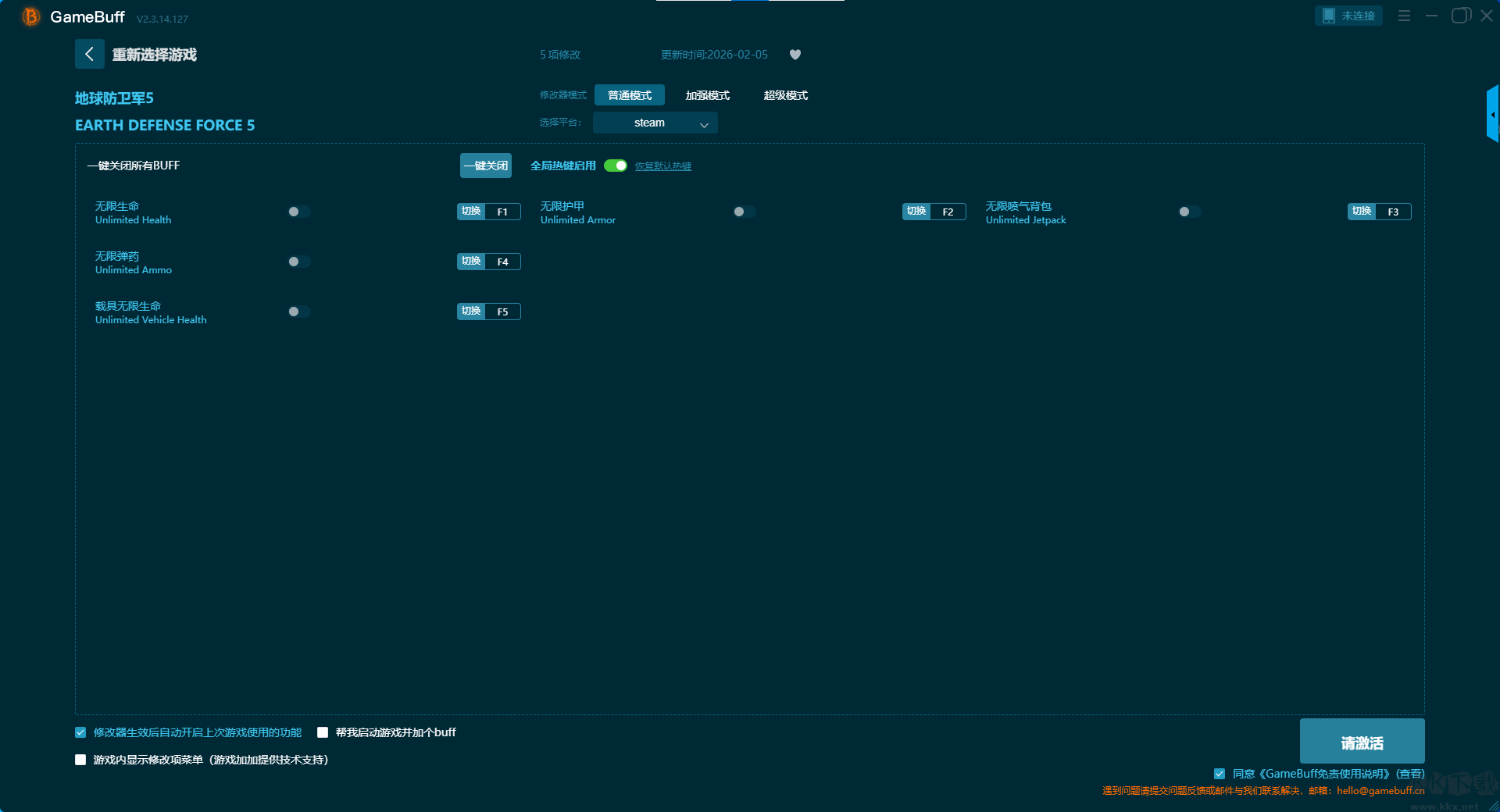 地球防卫军5五项修改器pc官网版普通模式修改功能介绍