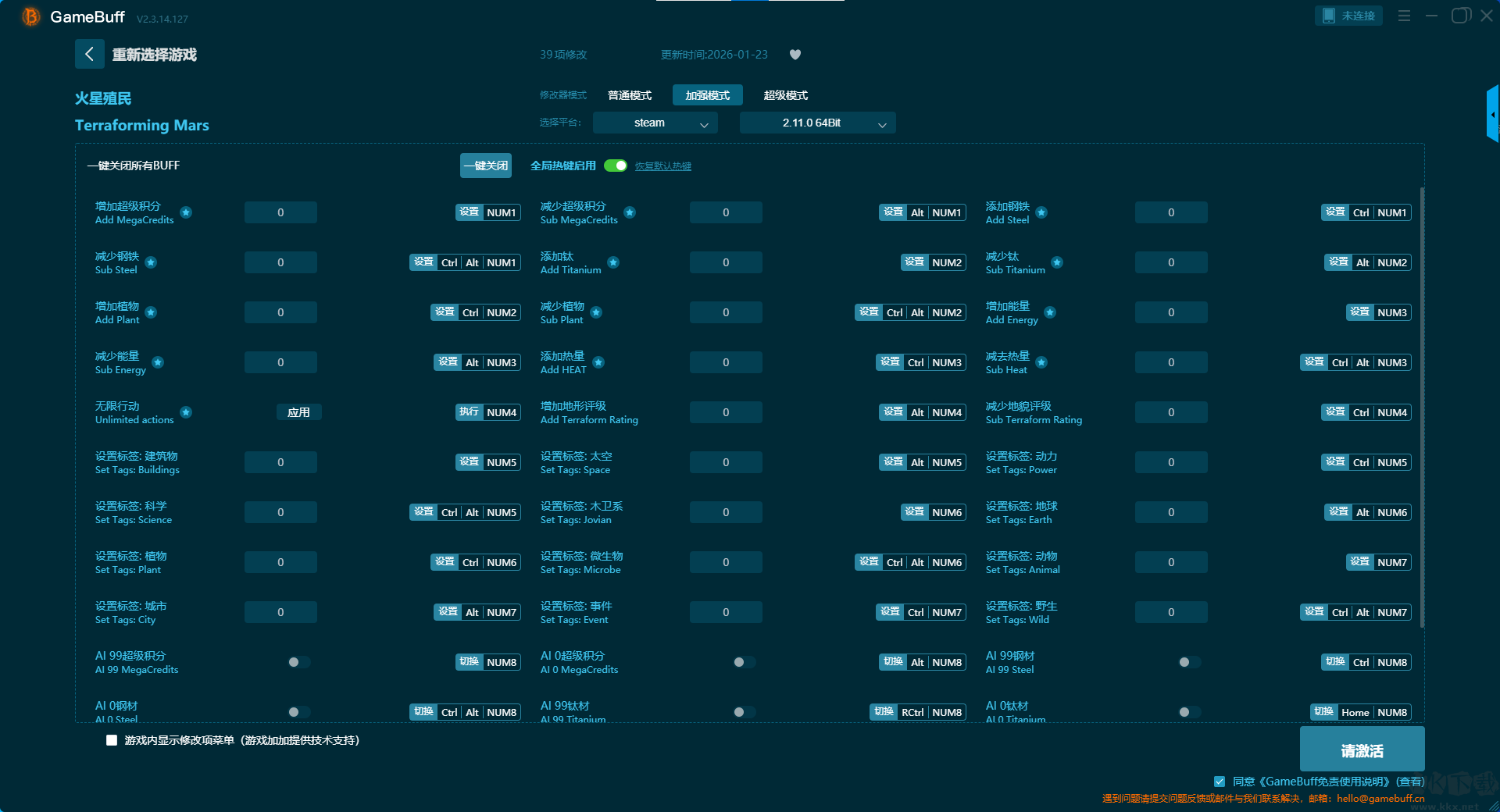 火星殖民十三项修改器pc官方版加强模式修改功能介绍