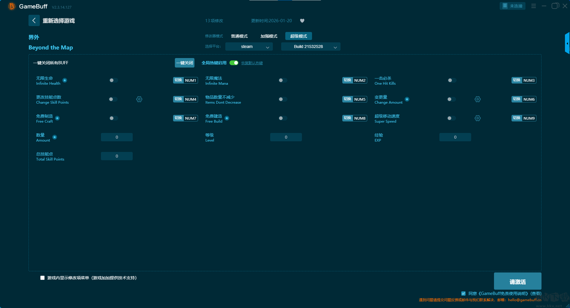 3、启动 界外(Beyond the Map) 修改器