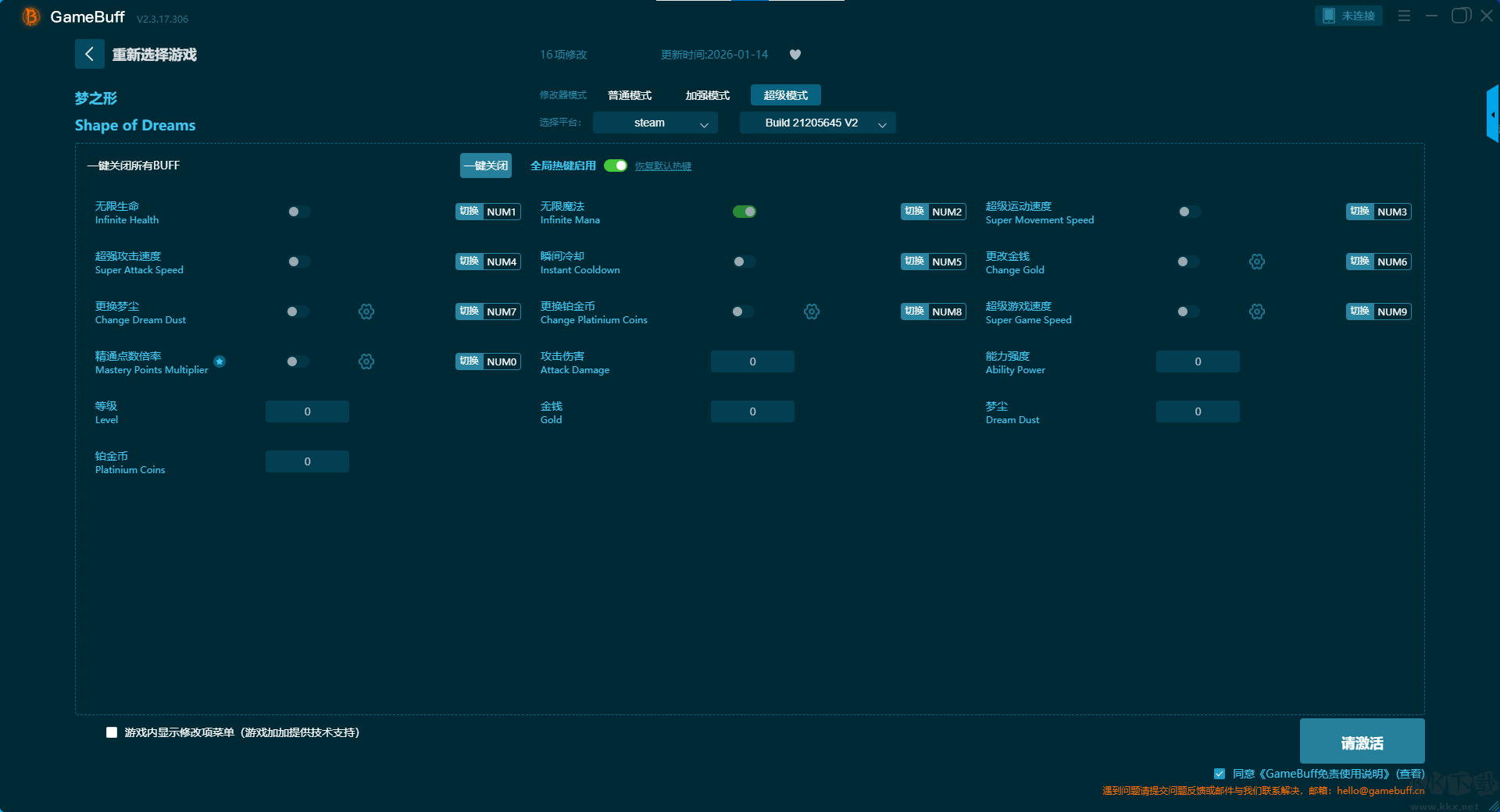 梦之形十三项修改器pc中文版修改器超级模式(支持 16 项修改,不支持联网模式)