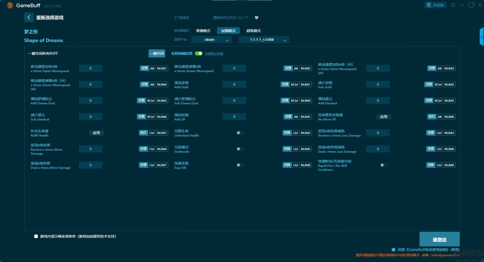 梦之形十三项修改器pc中文版修改器加强模式(支持 21 项修改,不支持联网模式)