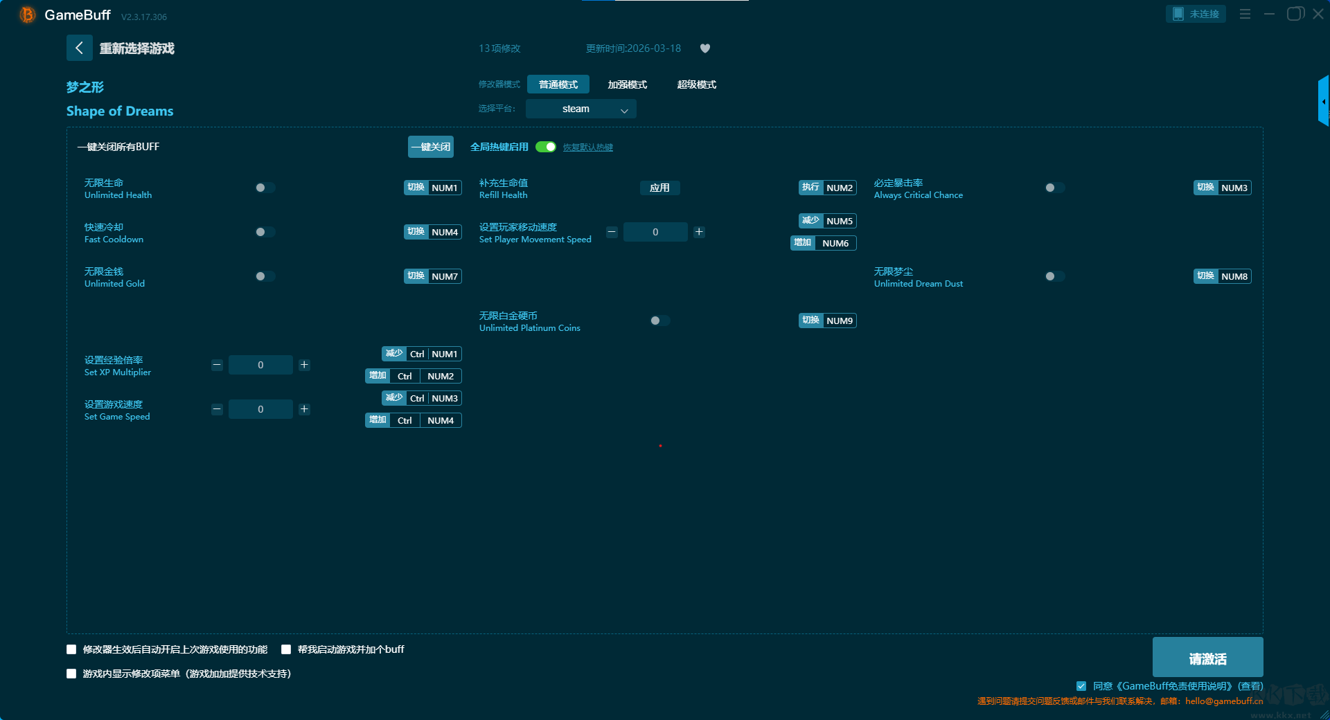 梦之形十三项修改器pc中文版修改器普通模式(支持 13 项修改,不支持联网模式)