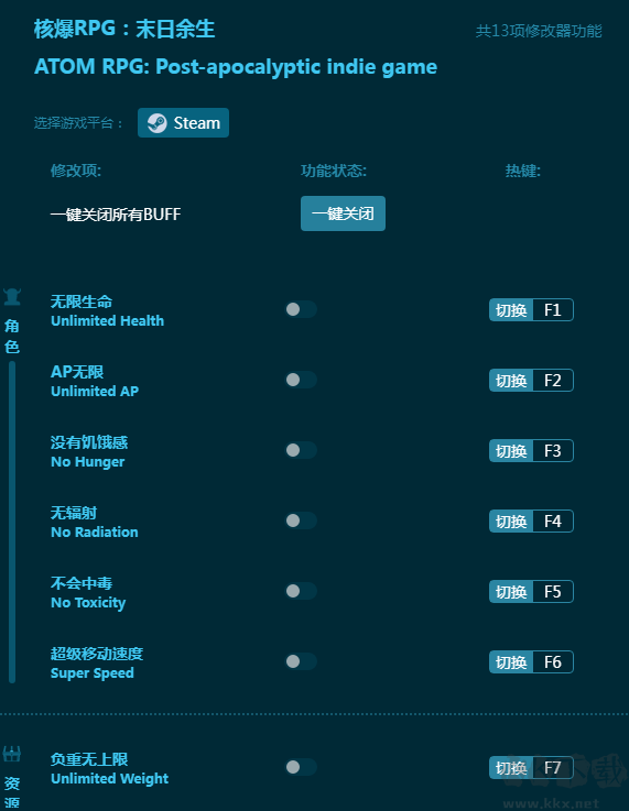 核爆RPG游戏修改器是一款为《核爆RPG末日余生》这款游戏而开发的游戏属性修改器软件。帮助玩家更好更爽更快速的体验游戏内容。支持开启无限生命,AP无限,没有饥饿没有辐射等等功能!有需要的朋友不要错过,KK下载站推荐大家下载体验!