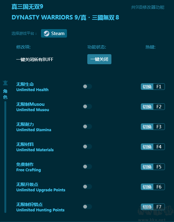 真三国无双9修改器是KK小编为广大真三国无双9玩家带来的多功能游戏修改器,支持丰富的游戏修改功能,内涵无限生命,无限耐力,无限材料等等,让你更畅快的体验游戏内容!感兴趣的朋友不要错过,KK下载站推荐大家下载体验!