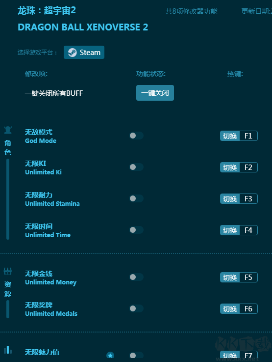 龙珠超宇宙2修改器是一款《龙珠超宇宙2》的专用修改器软件。内置八项强力游戏修改功能,一键开启简单快捷,包括无敌模式,无限KI,无限耐力等。全王都能干爆!感兴趣的朋友不要错过,KK下载站推荐大家下载体验!