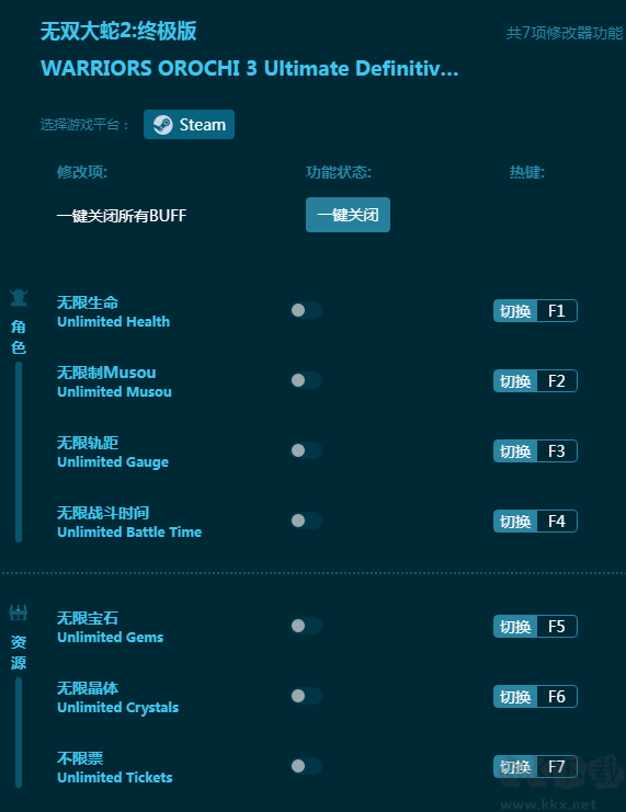 无双大蛇2终极版修改器专为《无双大蛇2终极版》打造,提供七项辅助功能,无限生命,无限宝石,无限晶体,无限票等等功能,支持解锁全角色人物,让玩家随时操作自己喜欢的角色进行游戏,同时还能游戏体验更佳!有需要的朋友不要错过,KK下载站推荐大家下载体验!