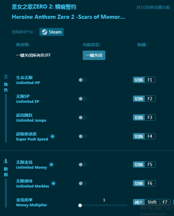 《圣女之歌ZERO2鳞痕誓约》是一款2D横版动作游戏。而这款《圣女之歌ZERO2鳞痕誓约修改器》则为大家带来十项游戏辅助功能,包括无限生命,无限SP,超高跳跃,无限金钱等强力功能,帮助玩家获得更爽快的游戏体验!有需要的朋友不要错过,KK下载站推荐大家下载体验!