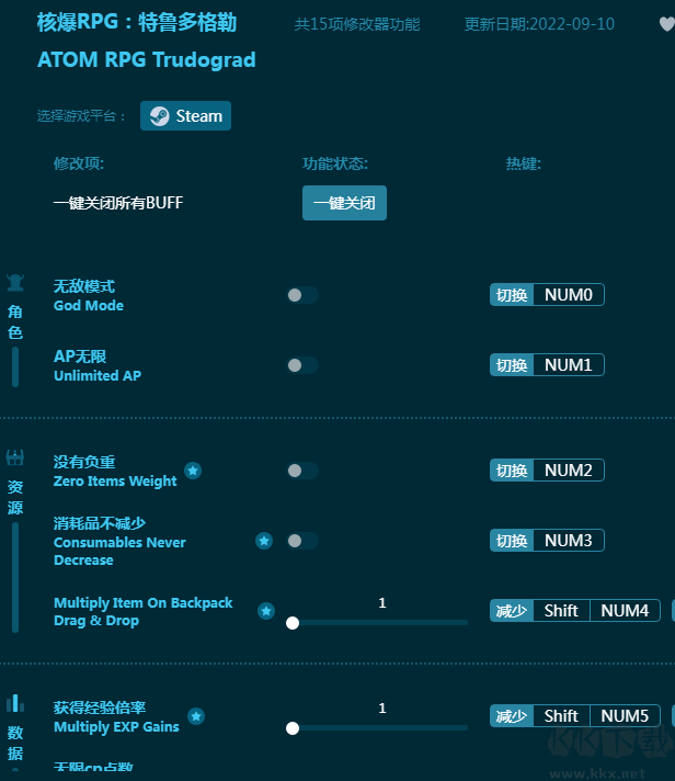《核爆RPG特鲁多格勒》是一款核爆末日背景的生存冒险游戏。KK小编为玩家带来《核爆RPG特鲁多格勒修改器》,内置十五项游戏辅助功能,包括无敌,AP无限,没有负重,消耗品不减少等强力功能,帮助玩家在末日中生存,并重建人类文明!感兴趣的朋友不要错过,KK下载站推荐大家下载体验!