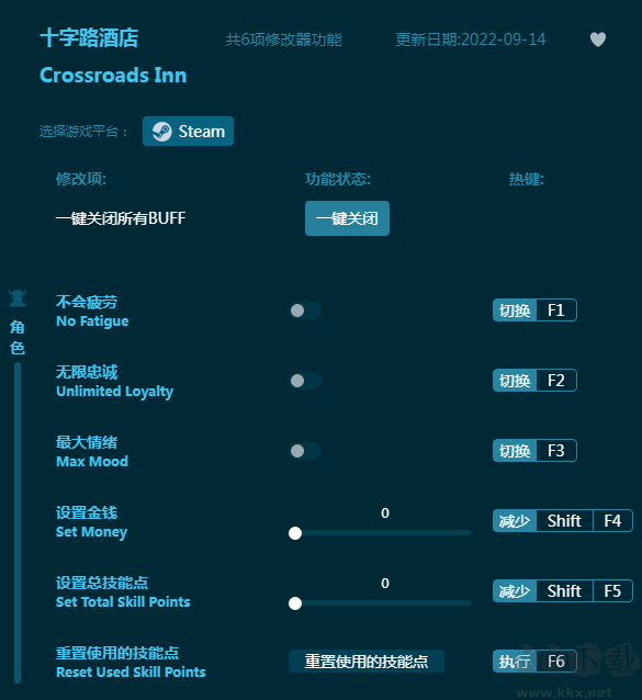 《十字路酒馆》是一款中世纪题材的酒馆模拟经营游戏。独特的酒馆故事带你领略中世纪世界!KK小编为各位玩家带来本作《十字路酒馆修改器》,为玩家提供不会疲劳,忠诚,金钱,情绪等游戏辅助,让玩家的酒馆做大做强!感兴趣的朋友不要错过,KK下载站推荐大家下载体验!