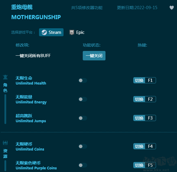 重炮母舰修改器是一款多功能的《重炮母舰》游戏修改辅助工具,为游戏玩家提供无限生命,能量,跳跃等游戏帮助,让玩家能够无限反击外星侵略者舰队,无所畏惧,拯救世界!感兴趣的朋友不要错过,KK下载站推荐大家下载体验!