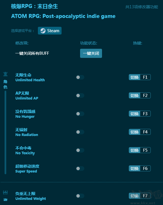 《核爆RPG末日余生修改器》专为核爆RPG末日余生游戏出品,提供十三项游戏辅助功能,包括无限生命,无限ap,没有饥饿感,不会中毒等等功能。在这里核爆末日世界中,玩家也能自由生活,重建人类文明!感兴趣的朋友不要错过,KK下载站推荐大家下载体验!