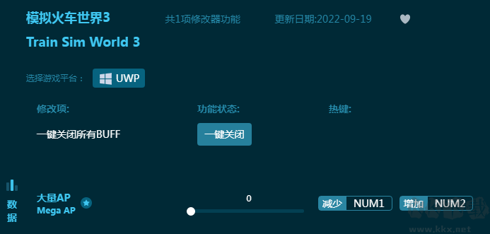 《模拟火车世界3》是一款火车驾驶模拟器游戏,驾驶巨大的火车满载货物征服高山海洋!游戏中有众多任务,只需使用这款《模拟火车世界3修改器》,能够为玩家提供大量AP,就能轻松完成,让玩家享受游戏中的美景!感兴趣的朋友不要错过,KK下载站推荐大家下载体验!