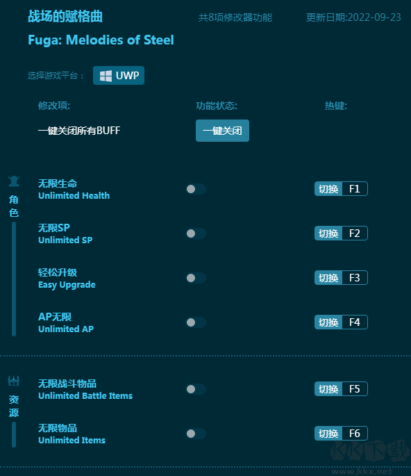 《战场的赋格曲》是一群孩子的冒险,驾驶巨大坦克找回家人。只要下载这款《战场的赋格曲修改器》,为玩家提供生命,SP,AP,战斗物品等游戏辅助加成,让玩家无所畏惧,找到家人!感兴趣的朋友不要错过,KK下载站推荐大家下载体验!