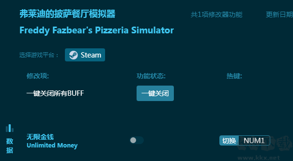 4、先运行“弗莱迪的披萨餐厅模拟器”游戏再运行修改器,游戏运行后点击右侧的“加个BUFF”按钮激活修改器。