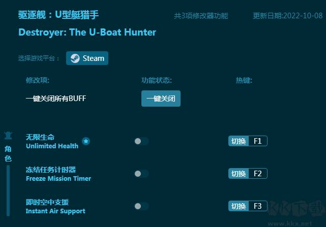 5、等待显示“BUFF加持成功”后,我们就可以在驱逐舰U型艇猎手游戏中使用按键来快速激活和关闭对应的修改器功能了