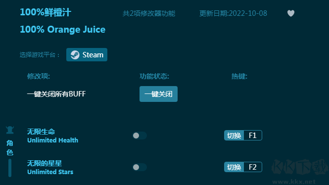 5、等待显示“BUFF加持成功”后,我们就可以在100%鲜橙汁游戏中使用按键来快速激活和关闭对应的修改器功能了