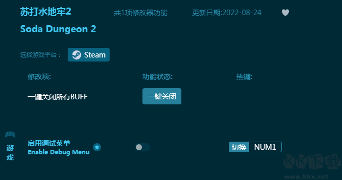 《苏打水地牢2》是一款休闲向的地牢冒险游戏,招募一群快乐小人为你攻打地牢,但是别忘了为他们提供后勤保障!KK下载站带来《苏打水地牢2修改器》帮助玩家开启游戏调试菜单,能够随意修改游戏数据,获得最佳游戏体验!感兴趣的朋友不要错过,KK下载站推荐大家下载体验!