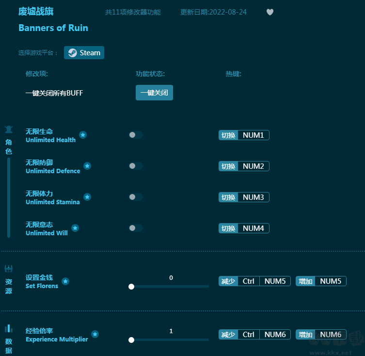 废墟战旗修改器是一款针对游戏《废墟战旗》打造的游戏辅助工具。废墟战旗修改器能够为玩家提供十一项游戏辅助,包括无限生命,无限防御,无限体力,无限意志等等,组建最强卡组,轻松探索游戏世界,游戏体验更佳!感兴趣的朋友不要错过,KK下载站推荐大家下载体验!