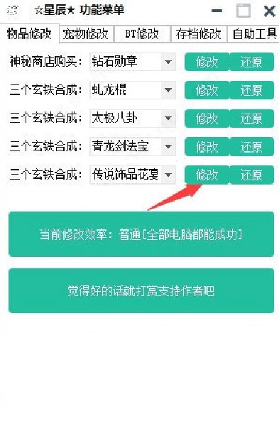 2、改地图内爆的武器装备、掉宝率修改、炼丹炉、移位修改。