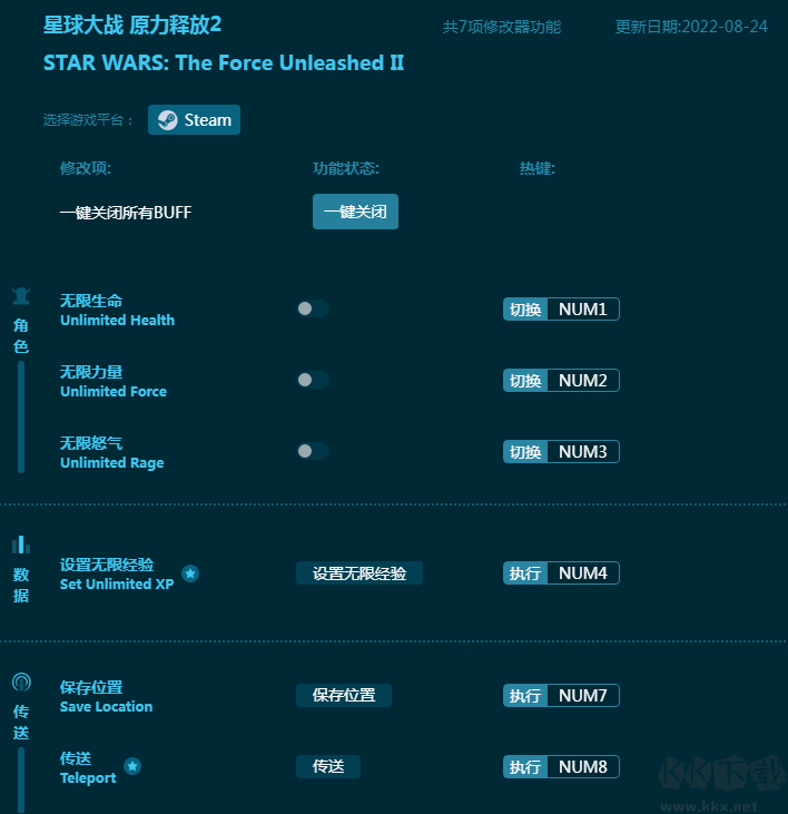 星球大战:原力释放2修改器是一款针对游戏《星球大战:原力释放2》打造的辅助工具。星球大战:原力释放2相比前作更成熟好玩,带来更精彩的剧情以及更强大的BOSS。这款《星球大战:原力释放2修改器》能够提供玩家无限生命,无限力量,无限怒气的功能,让玩家的游戏体验更爽快!感兴趣的朋友不要错过,KK下载站推荐大家下载体验!