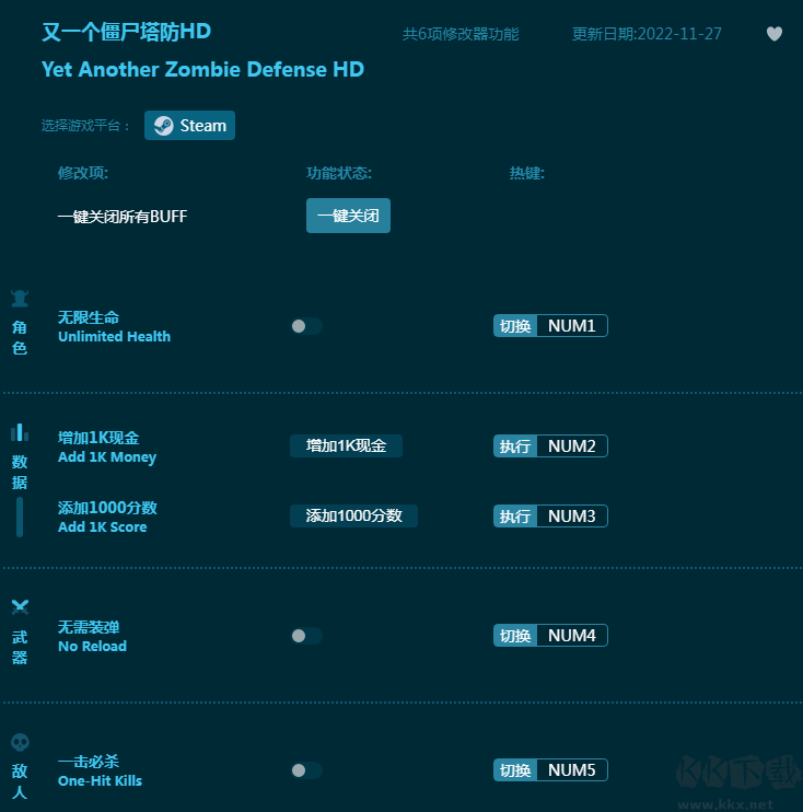 《又一个僵尸塔防HD》是一款全新的僵尸塔防射击游戏。KK下载站为玩家们带来《又一个僵尸塔防HD修改器》为玩家们提供无限生命,无限金钱,无需装弹等强力游戏辅助,让玩家的游戏体验更爽快,体验僵尸割草!感兴趣的朋友不要错过,KK下载站推荐大家下载体验!