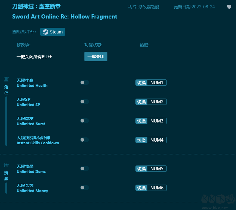 《刀剑神域:虚空断章》是刀剑神域系列第二作,从虚空区开始你的游戏冒险。这款《刀剑神域:虚空断章修改器》为玩家带来无限生命,无限SP,无限爆发,技能瞬间冷却,无限金钱等众多游戏辅助,让玩家游戏更爽快,轻松有趣!感兴趣的朋友不要错过,KK下载站推荐大家下载体验!