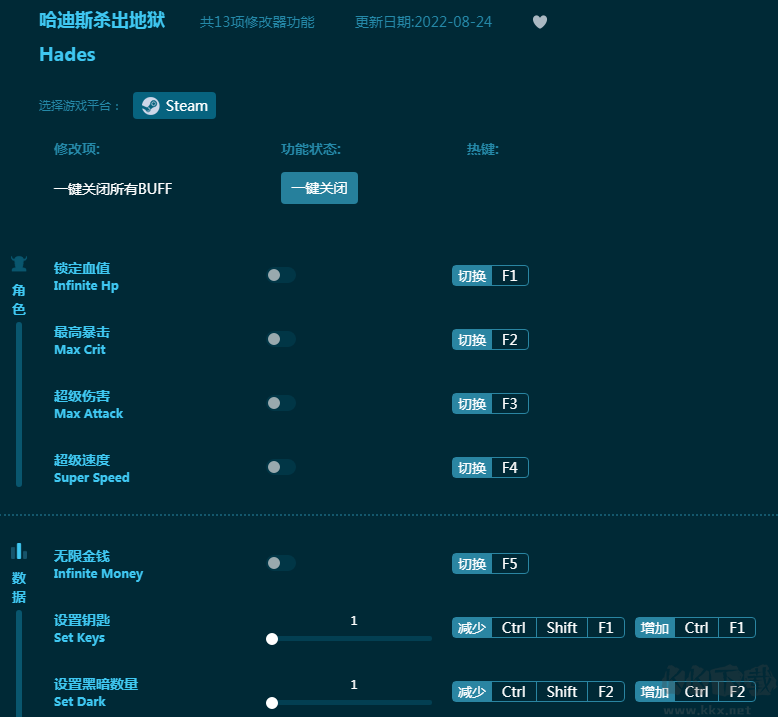 《哈迪斯杀出地狱》是一款高自由度动作冒险游戏,带给玩家超爽的地狱逃生之旅。这款《哈迪斯杀出地狱修改器》能够为玩家带来更爽的操作体验,内置超级伤害,超级速度,无限金钱等强力游戏辅助,让玩家的游戏更爽快!感兴趣的朋友不要错过,KK下载站推荐大家下载体验!