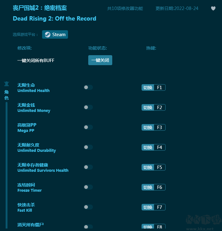 丧尸围城2绝密档案修改器是一款专门针对游戏《丧尸围城2绝密档案》出品的游戏修改器。内置强力十项游戏辅助,无限生命,无限金钱,无限耐久度,冻结时间,快速击杀等等,杀丧尸如割草,游戏体验更爽快!感兴趣的朋友不要错过,KK下载站推荐大家下载体验!