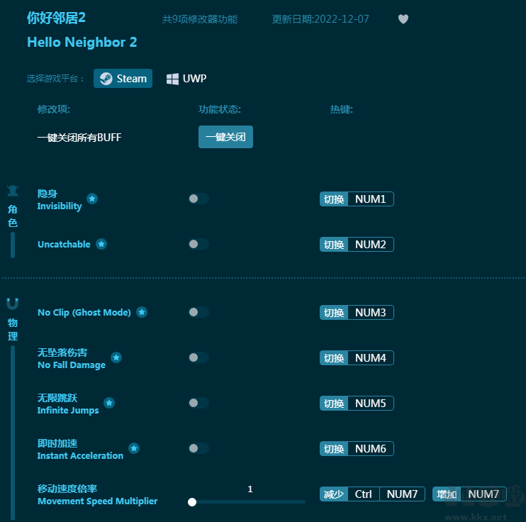 《你好邻居2》是一款恐怖解密游戏,玩家要调查一起人口失踪案,并解救邻居。KK下载站带来这款《你好邻居2修改器》内置隐身,无坠落伤害,无限跳跃,即时加速等多项强力游戏辅助,帮助玩家大战乌鸦人!感兴趣的朋友不要错过,KK下载站推荐大家下载体验!