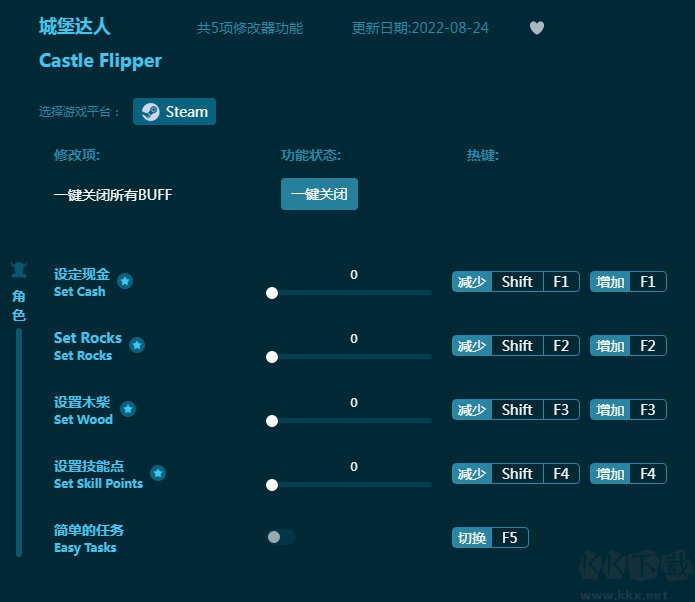 城堡达人修改器是一款非常好用的游戏辅助工具,为城堡达人玩家们提供多项免费的游戏辅助功能。包括无限金钱,无限技能点,无限木柴等等,让玩家的建筑事业更快速发展,游戏体验更佳!感兴趣的朋友不要错过,KK下载站推荐大家下载体验!