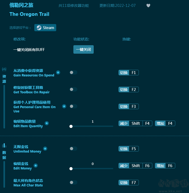 《俄勒冈之旅》是一款超好玩的西部冒险游戏。玩家在旅途中不断应对意外事件,每一次都是全新的冒险。KK下载站带来这款《俄勒冈之旅修改器》提供玩家无限资源,无限金钱,最大角色状态等多项强力功能,让玩家的旅途更轻松,游戏体验更佳!感兴趣的朋友不要错过,KK下载站推荐大家下载体验!