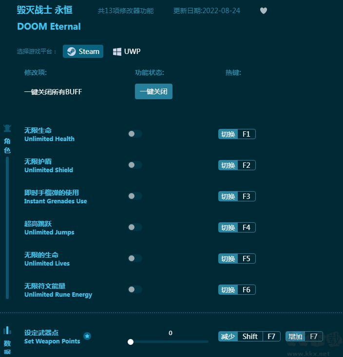 《毁灭战士:永恒》是一款非常刺激的射击动作游戏,玩家扮演毁灭战士阻挡地狱军团的入侵。KK下载站带来《毁灭战士:永恒修改器》提供多项游戏帮助,包括无限生命,无限护盾,超高跳跃,无限符文能量等等,帮助玩家快速击杀敌人,游戏体验更佳!感兴趣的朋友不要错过,KK下载站推荐大家下载体验!