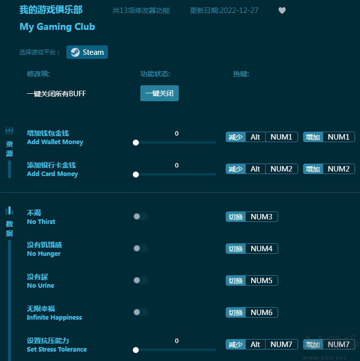 《我的游戏俱乐部》是一款游戏俱乐部模拟经营游戏,探索经营让自己的俱乐部更出色。KK下载站带来《我的游戏俱乐部修改器》能够为玩家带来无限金钱,无限幸福,没有饥饿,不渴等强力功能,更专注快速的发展俱乐部!感兴趣的朋友不要错过,KK下载站推荐大家下载体验!