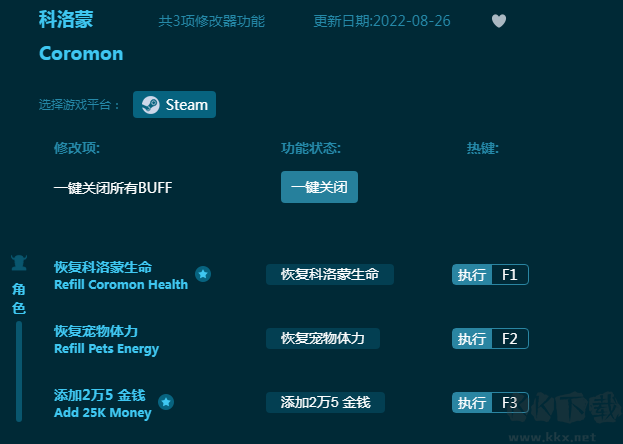 4、先运行“科洛蒙”游戏再运行修改器,游戏运行后点击右侧的“加个BUFF”按钮激活修改器。