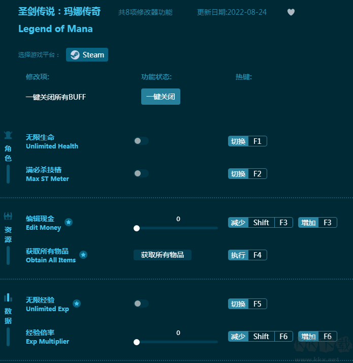 圣剑传说:玛娜传奇修改器是一款非常实用的游戏修改器,为《圣剑传说:玛娜传奇》游戏玩家带来无限生命,无限现金,无限经验,所有物品等等强力辅助,让玩家的冒险之旅更精彩,游戏体验更佳!感兴趣的朋友不要错过,KK下载站推荐大家下载体验!
