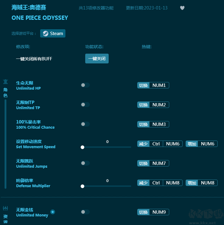 《海贼王:奥德赛》基于海贼王改编开放世界冒险游戏,玩家可扮演众多熟悉的角色进行冒险。KK下载站带来《海贼王:奥德赛修改器》为玩家提供无限生命,无限TP,无限跳跃,无限金钱,100%暴击等强力游戏辅助,让玩家轻松挑战海贼世界!感兴趣的朋友不要错过,KK下载站推荐大家下载体验!