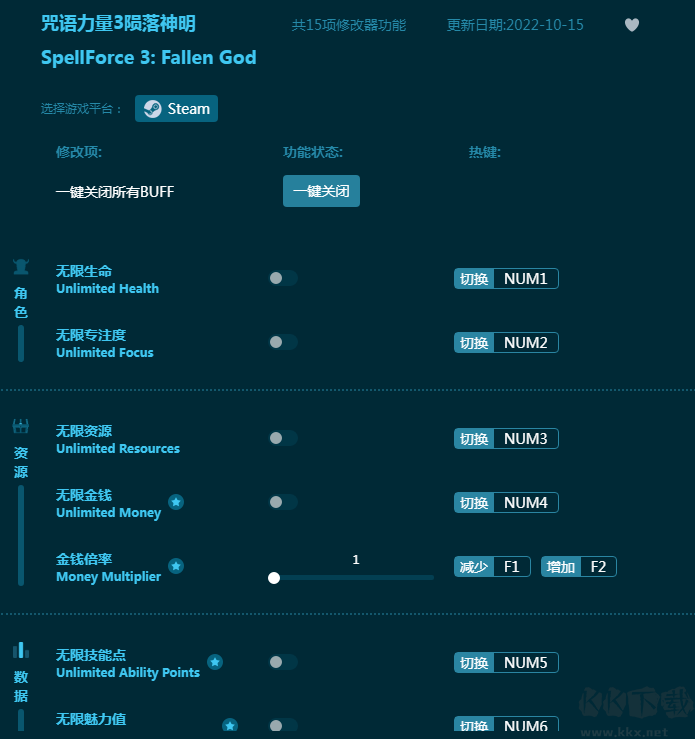 《咒语力量3:陨落神明》是一款RTS与RPG结合的冒险游戏,带领你族群掌握自己的命运。这款《咒语力量3:陨落神明修改器》能为玩家提供无限生命,无限专注度,无限资源,无限金钱,无限魅力值等游戏帮助,让玩家获得最佳游戏体验!感兴趣的朋友不要错过,KK下载站推荐大家下载体验!