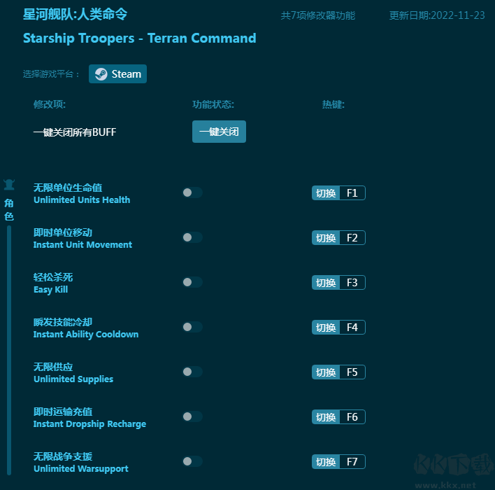 星河舰队:人类命令修改器是一款非常好用的游戏修改器,专为《星河舰队:人类命令》玩家出品,内置无限单位生命值,无限单位移动,无限供应,无限战争支援等强力游戏辅助提供玩家自由使用,让玩家的游戏体验更爽快!感兴趣的朋友不要错过,KK下载站推荐大家下载体验!