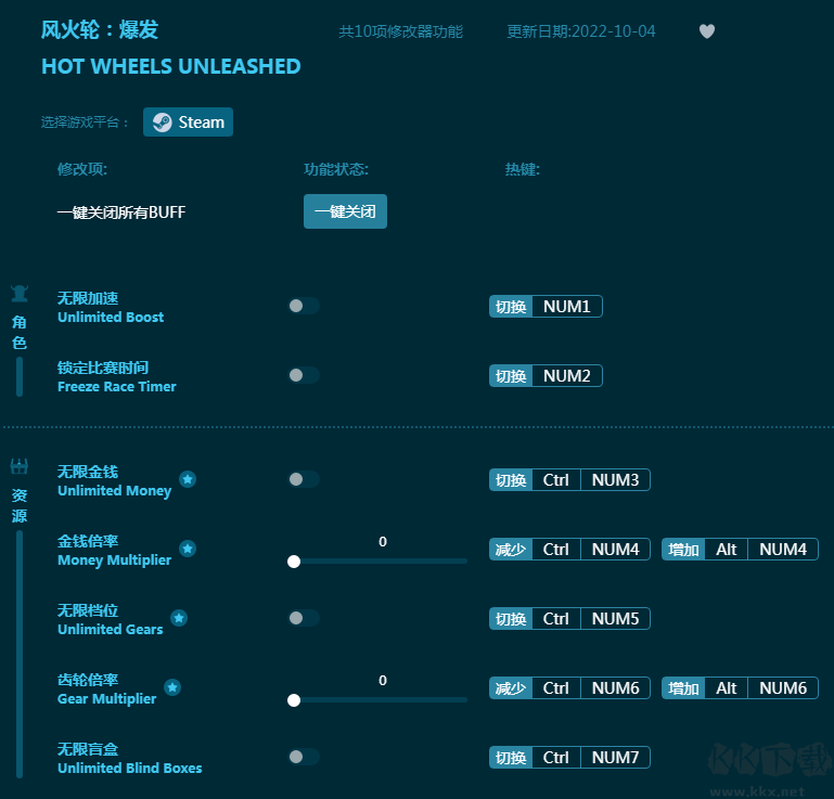 《风火轮:爆发》是一款超刺激的卡通风格赛车竞速游戏,驾驶你独一无二的炫酷跑车甩开所有人!这款《风火轮:爆发修改器》能够为玩家提供无限加速,无限金钱,无限档位,无限盲盒等游戏辅助,加速在加速带来最爽的飙车快感!感兴趣的朋友不要错过,KK下载站推荐大家下载体验!