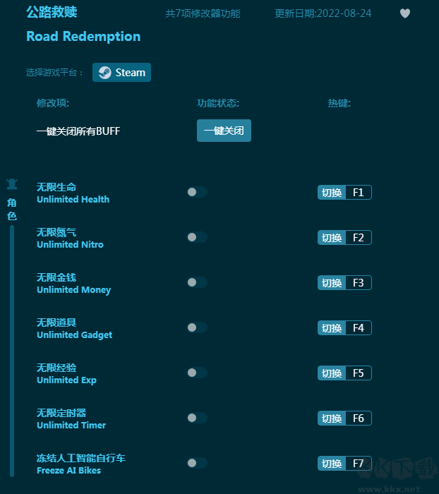 《公路救赎》是一款暴力摩托式的驾驶格斗游戏,在摩托车上展示你的格斗技巧。这款《公路救赎修改器》为玩家提供无限生命,无限氮气,无限金钱,无限道具,无限定时器等强力游戏辅助,消灭你看到的所有敌人,游戏体验绝对爽快!感兴趣的朋友不要错过,KK下载站推荐大家下载体验!
