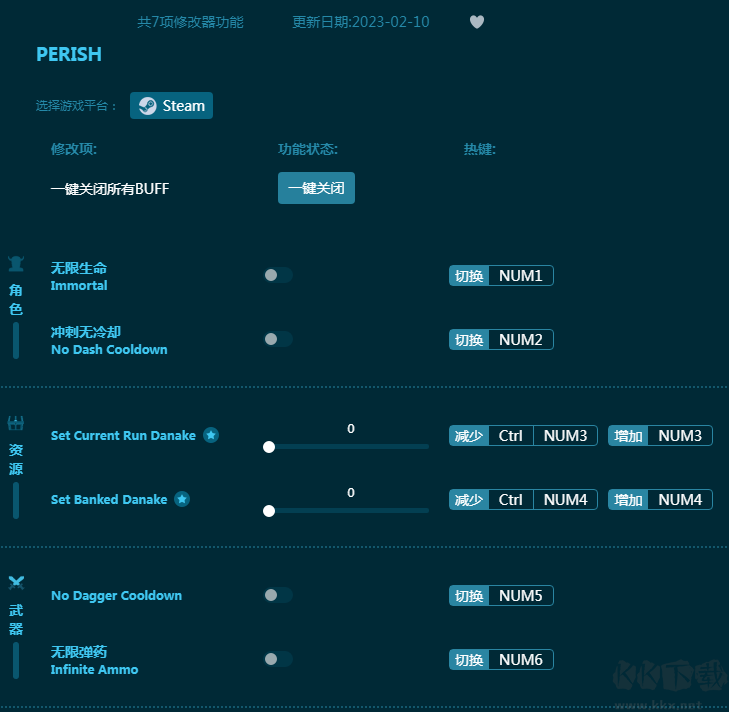 《陨灭Perish》是一款最新的暴力动作射击游戏,和古希腊神祗战斗。KK下载站带来这款《陨灭Perish修改器》能够为玩家提供无限生命,冲刺无冷却,无限弹药等强力辅助,帮助玩家的游戏体验更刺激爽快!感兴趣的朋友不要错过,KK下载站推荐大家下载体验!