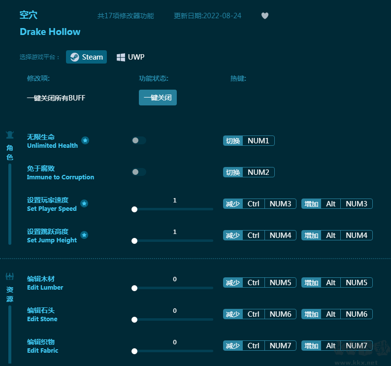 空穴修改器专为游戏《空穴》出品,空穴修改器为游戏玩家们带来无限生命,无限木头,无限石头,无限速度,无限跳跃高度等强力游戏辅助,让玩家在游戏中能够获得更爽快的游戏体验!感兴趣的朋友不要错过,KK下载站推荐大家下载体验!