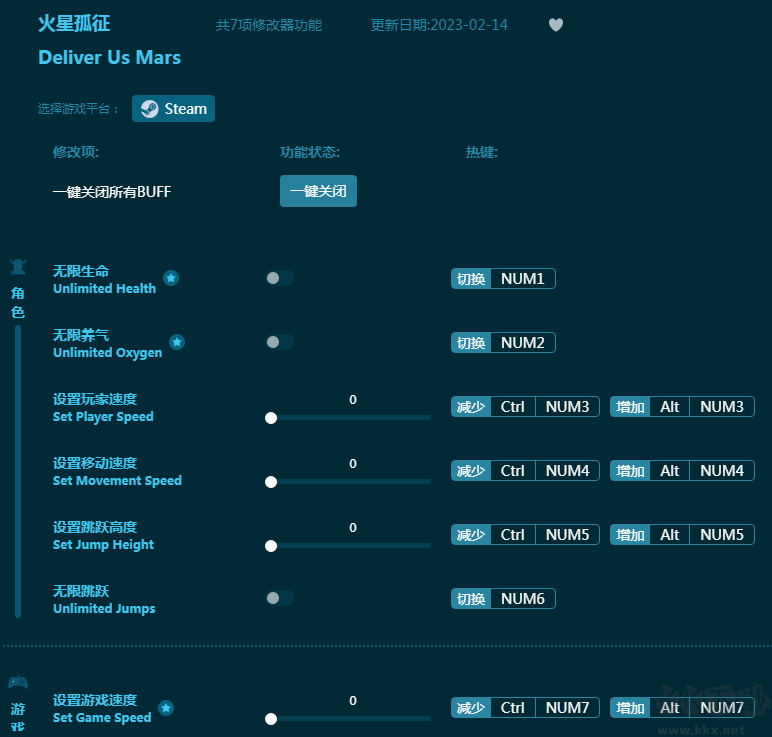 《火星孤征》是一款奇特的科幻冒险游戏,成为宇航员,探索奇妙火星。KK下载站带来这款《火星孤征修改器》能够为玩家提供无限生命,无限氧气,无限跳跃,超高移动速度等游戏帮助,让玩家在火星探索更轻松,游戏体验更佳!感兴趣的朋友不要错过,KK下载站推荐大家下载体验!