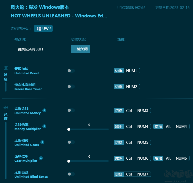《风火轮:爆发windows版》是最新的PC端赛车竞速游戏。驾驶你的专属跑车,全速前进吧!KK下载站带来这款《风火轮:爆发修改器》内置无限加速,锁定比赛时间,无限金钱,无限档位,无限盲盒等游戏辅助,让你全方面超越别人,游戏体验更爽!感兴趣的朋友不要错过,KK下载站推荐大家下载体验!