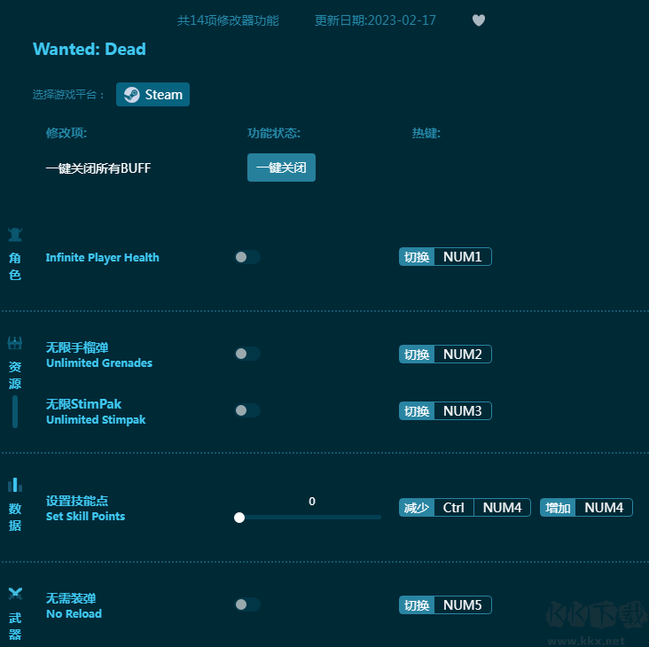 《Wanted:Dead》是一款《忍龙》的精神续作,集合《神海》+《忍龙》玩法,等你挑战。Wanted:Dead修改器为玩家带来无限手榴弹,无需装弹,设置技能点,无限stimpak等强力辅助,让玩家的冒险更爽快!感兴趣的朋友不要错过,KK下载站推荐大家下载体验!