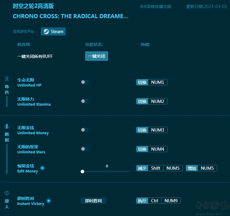 时空之轮2高清版修改器是一款专业的游戏修改器,为游戏《时空之轮2高清版》提供无限生命,无限体力,无限金钱,无限星星,即时胜利等游戏帮助。有了这款修改器,玩家能够更顺利的冒险,通关完美结局!感兴趣的朋友不要错过,KK下载站推荐大家下载体验!